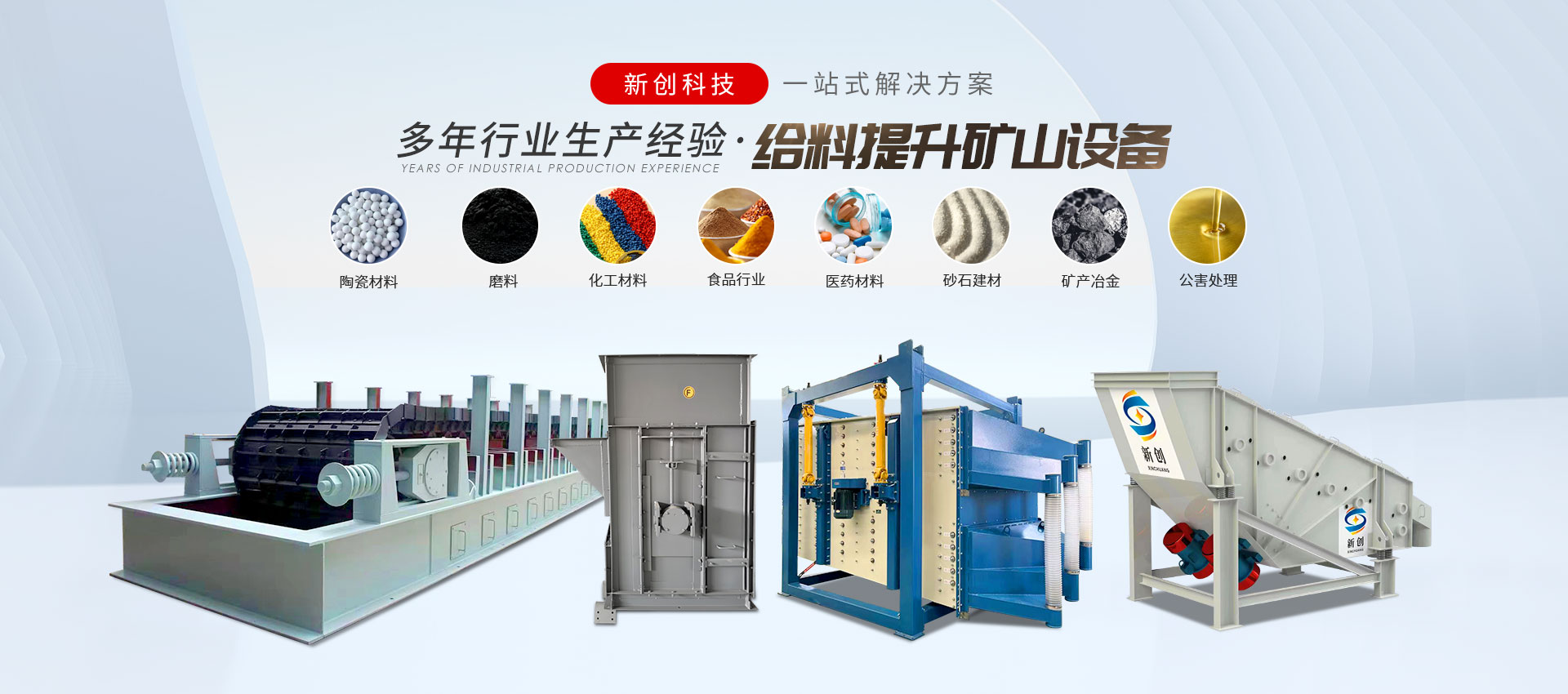 邯鄲市峰峰礦區(qū)新創(chuàng)科技有限公司是振動(dòng)設(shè)備、給料設(shè)備、振動(dòng)篩分設(shè)備、輸送設(shè)備、提升設(shè)備、除塵設(shè)備等制造廠(chǎng),玻璃原料輔機(jī)生產(chǎn)廠(chǎng)。