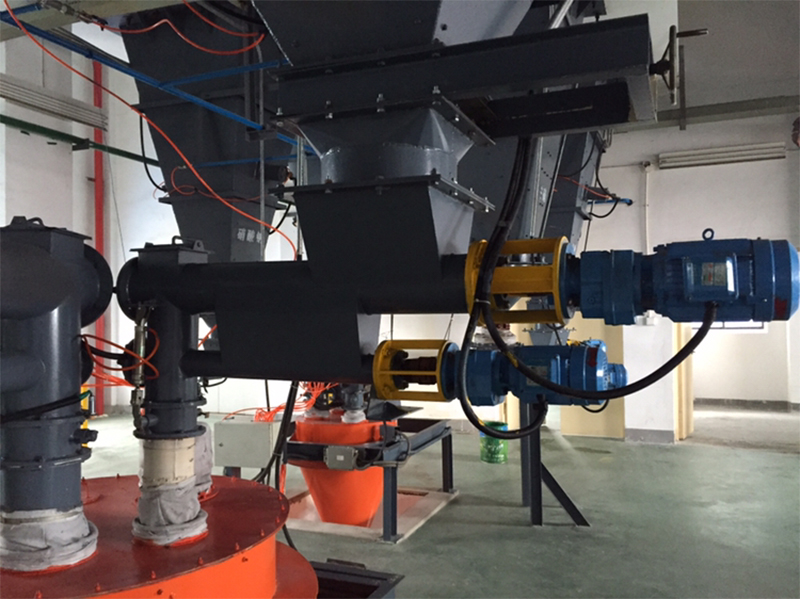 產(chǎn)品描述: 螺旋給料機是集粉體物料穩(wěn)流輸送、稱重計量和定量控制為一體的新一代產(chǎn)品;適用于各種工業(yè)生產(chǎn)環(huán)境的粉體物料連續(xù)計量和配料;采用了多項**技術(shù),運行可靠,控制精度高;尤其適用于建材、冶金、電力、化工等行業(yè)粉體物料的連續(xù)計量和配料?! ÷菪o料機把經(jīng)過的物料通過稱重橋架進行檢測重量,以確定膠帶上的物料重量,裝在尾部的數(shù)字式測速傳感器,連續(xù)測量給料機的運行速度,該速度傳感器的脈沖輸出正比于給料機的速度,速度信號和重量信號一起送入給料機控制器,控制器中的微處理器進行處理,產(chǎn)生并顯示累計量/瞬時流量。該流量與設(shè)定流量進行比較,由控制儀表輸出信號控制變頻器改變給料機的驅(qū)動速度,使給料機上的物料流量發(fā)生變化,接近并保持在所設(shè)定的給料流量,從而實現(xiàn)定量給料的要求?! ≈饕攸c 1、專用于粉狀物料的計量和控制。 2、給料螺旋具有獨特的穩(wěn)流結(jié)構(gòu),在整個進料口截面上料粉均勻下沉,不易結(jié)拱,不易沖料?! ?、擺線針輪減速電機,保證了長期穩(wěn)定運行。 4、穩(wěn)流螺旋采用變螺距結(jié)構(gòu)和出口溢流方式,有效的解決了物料的沖料難題(產(chǎn)量>60T/H采用雙管穩(wěn)流)?! ?、計量螺旋秤采用3只高精度傳感器(拉力)直接稱重結(jié)構(gòu),成功的解決了杠桿稱重造成的誤差,使計量精度大為提高?! ?、采用數(shù)字采集模塊,有效分辨率高達100萬;采集速率50次/秒;年漂移小于50PPM;溫度漂移小于50PPM?! ?、密封結(jié)構(gòu),減少粉塵外揚。